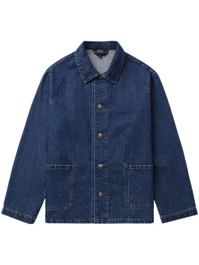 靛蓝色 棉 牛仔 钮扣 经典领 长袖 侧置两个贴袋 平直下摆