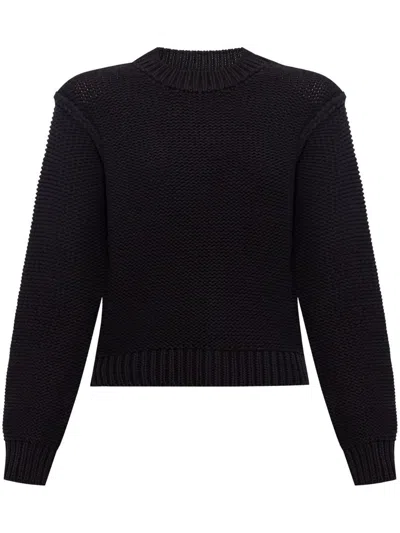 黑色 棉质混纺 罗纹针织 圆领 罗纹袖口和下摆 长袖 平直下摆