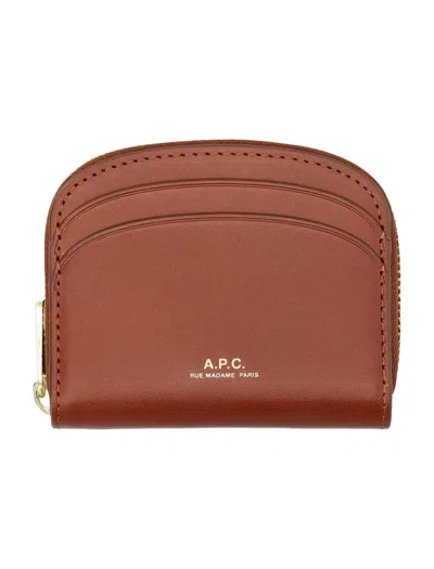 Smooth leather Demi-Lune card holder from A. P. C. , with two card slots on each side, a multifunctional pocket in the center, rounded corners and embossed gold-colored A. P. C. Rue Madame Paris logo. Composition: 100% CALF