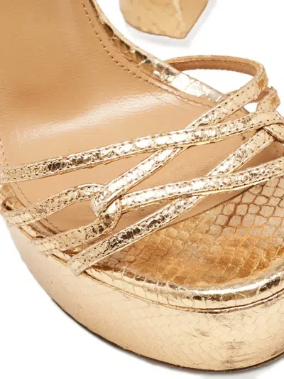 金色 厚底 蟒蛇纹效果皮质 踝带 粗跟 袢带 状态:很好。这款典藏臻品商品状态很好,略有使用痕迹,可能存在于材料或电镀褪色及划痕。