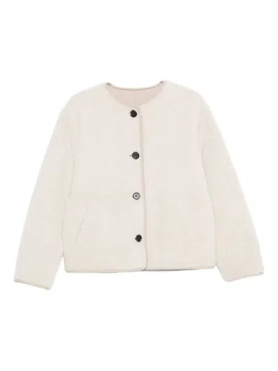 米白色 纽扣开合 圆领 长袖 平直下摆