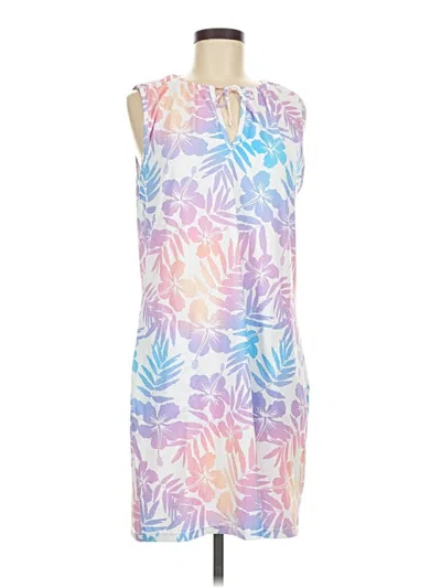 Assorted Brands Casual Dress, Size: Medium. Item Details: Purple, Tropical Pattern, Shift, Boatneck, Short Length, Sleeveless, Print, Women's Dresses, Polyester/Spandex