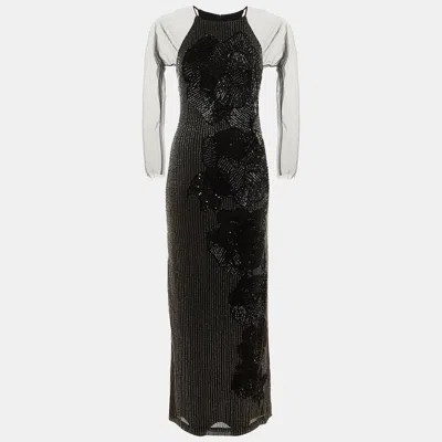 Pre-owned Black Embellished Mesh Gown L