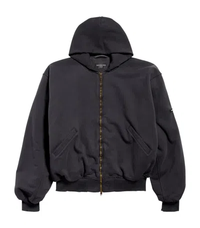 BALENCIAGA Cotton Hooded Bomber Jacket In Silver