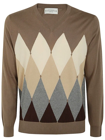 BALLANTYNE V Neck Pullover In Brown