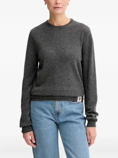 灰色 标贴 圆领 长袖 罗纹袖口 罗纹下摆