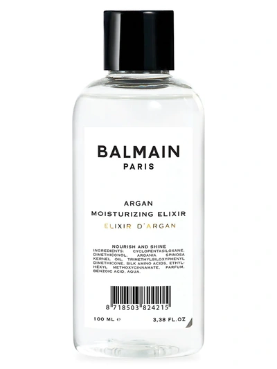 WHAT IT IS Rejuvenating pure organic argan oil serum for lustrous-looking shine, gives an instant boost creating a smooth and healthy look without residue. Rejuvenating pure organic argan oil serum for lustrous-looking shine, gives an instant boost creating a smooth and healthy look without residue. The ingredients, Silk Protein and Argan Oil, stimulate an optimal moisture retention within the hair cell, repair and protect damaged, dry and weak hair from environmental extremes. The Styling Line has a wonderful signature fragrance, a unique blend of notes reminscent of the perfect summer's day. Each time the products are used, they enrich hair with nurturing ingredients and fragrance hair with this mysterious, feminine and sexy scent. 3.4 oz. Made in France. WHAT IT DOES Adds a brilliant shine. Hydrating. Smoothes damaged hair. HOW TO USE Apply by spreading through damp or dry hair. Do not rinse. Apply a few drops of Argan Moisturizing Elixir evenly before washing, hair will absorb the oil and will prevent the moisture from getting into the cuticle of porous hair and it will "push" water out. This will reduce the drying time of the hair. INGREDIENTS Cyclopentasiloxane, Dimethiconol, Argania Spinoza Kernel Oil, Trimethylsiloxyphenyl Dimethicone, Silk Amino Acids, Ethylhexyl Methoxycinnamate, Parfum. Cosmetics - Haircare > Balmain Hair Couture > Saks Fifth Avenue > Barneys. Balmain Hair Couture.