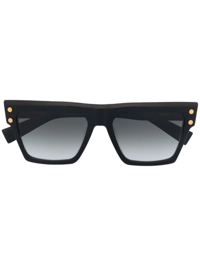 Black square-frame tinted sunglasses from Balmain Eyewear featuring gradient lenses, grey tinted lenses, square frame, straight arms and curved tips. These glasses come with a protective case.. All glasses from FARFETCH are sold as non-prescription frames..