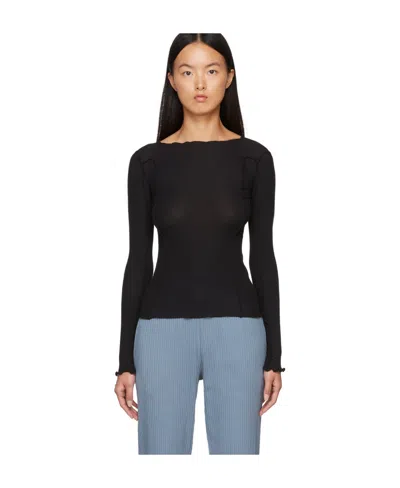 BASERANGE Ribbed-knit Long-sleeve Top In Black