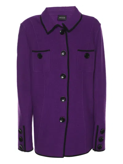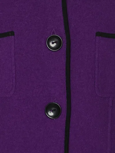 purple virgin wool contrast trim button front front pockets buttoned cuffs Condition: EXCELLENT. This previously owned item is in near-perfect condition with no signs of damage or use.