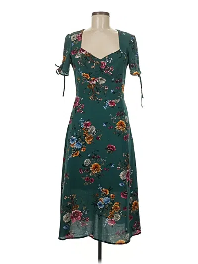 Bebop Casual Dress, Size: 7. Item Details: Teal, Floral Pattern, Wrap, Tie Neck, Midi/Calf Length, Short Sleeve, Print, Junior Dresses, Polyester/Spandex