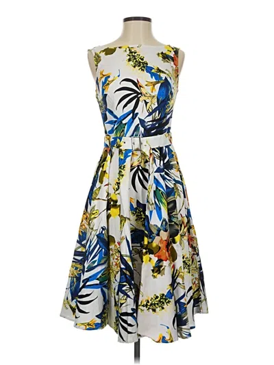 Belle Poque Cocktail Dress, Size: Small. Item Details: Blue, Tropical Pattern, Fit & Flare, Boatneck, Knee Length, Sleeveless, Print, Women's Dresses