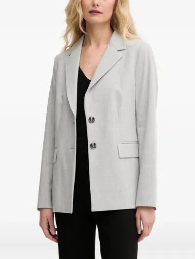 浅灰色 钮扣开合 平驳领 两个正面盖袋 长袖 单排扣