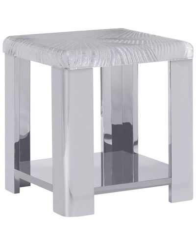 Color/Finish: Stainless Steel With The Cool Look Of Exquisitely Sculpted Ice, The Aura Accent Table Showcases An Acrylic Top That Is Intricately Carved With Grooves And Folds. A Stainless Steel Frame Reflects The Pattern In High Gloss Style, Including A Full View Of The Pattern On A Stainless Shelf. Isfd 2022 Pinnacle Award Winner. Measurements: 22.09In Wide X 22.09In Deep X 24In High Acrylic, Metal Imported