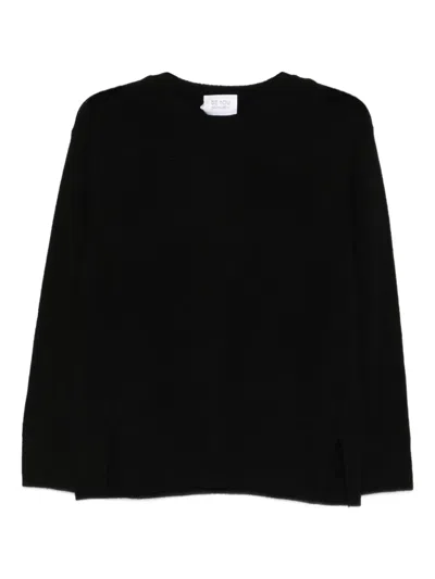 黑色 圆领 长袖 侧开衩 罗纹纹理 宽松设计