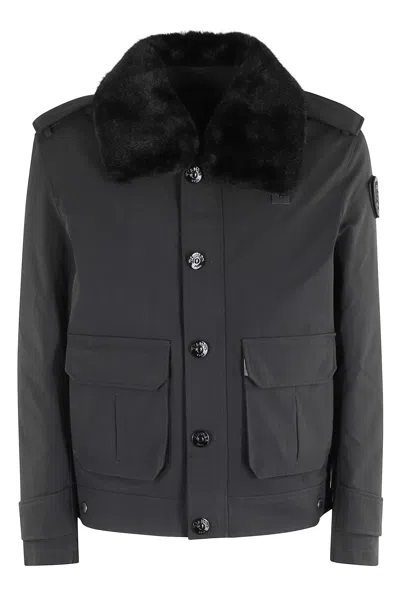 Ward jacket -Blauer -Black color -Collar with faux fur -Front pockets -Long sleeve with side logo -Central button closure with double-slider zipper -Removable bib