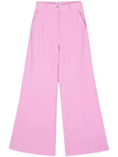 粉色 绉纱纹理 腰带袢 帕拉松长裤设计 压褶 两侧饰有挖袋 logo压花纽扣 阔腿 两个后置搭扣双嵌线袋