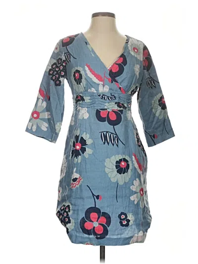 Boden Casual Dress, Size: 4. Item Details: Blue, Wrap, V-Neck, Short Length, 3/4 Sleeve, Print, Women's Dresses, 100% Linen