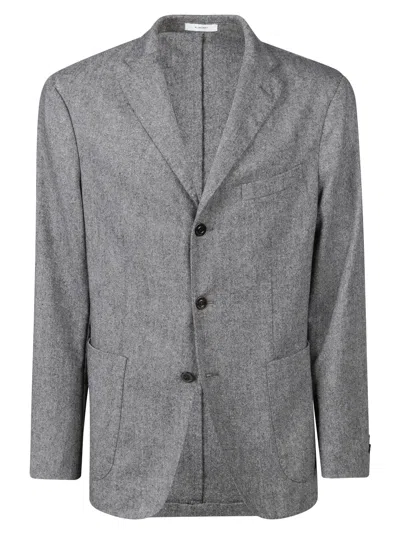 灰色 三纽扣开合 贴袋 平驳领 长袖 羊毛