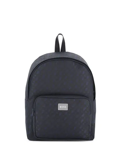 海军蓝色 印花设计 正面拉链口袋 正面饰有标贴 顶置手柄