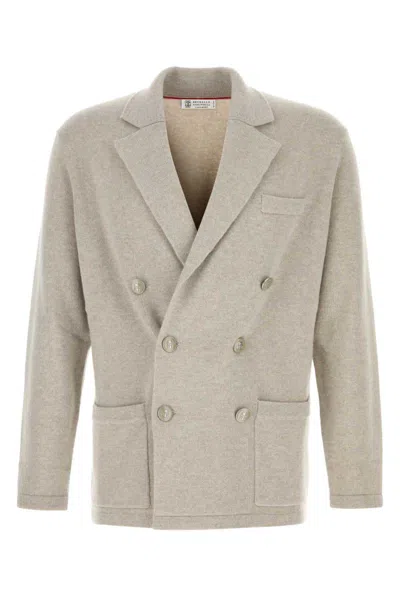 BRUNELLO CUCINELLI Cashmere Blazer Double Breasted Notched Lapels In Neutral