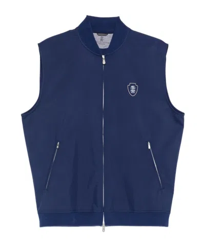 BRUNELLO CUCINELLI Logo Detailed Zipped Gilet In Blue