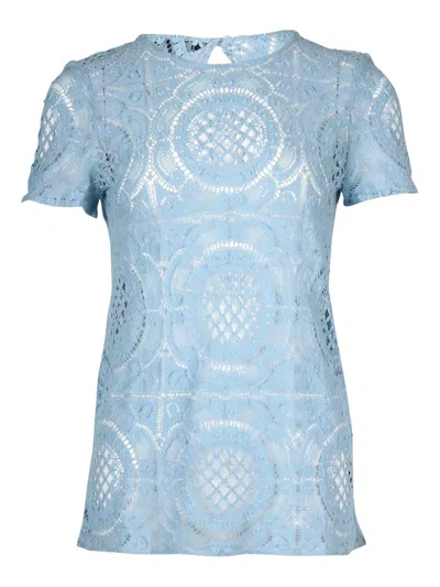 约 2010年代 浅蓝色 棉蕾丝 短袖 圆领 大面积蕾丝图案