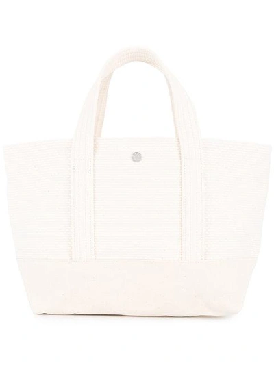 CaBas 白色 全棉 小号针织手提包。 顶部有弧状手柄, 顶部有摁扣, 内置拉链口袋, 针织款式。 棉 100%