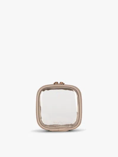 Meet the Tiny Clear Cosmetics Case.• Transparent PVC Panels: Makes it easy to spot exactly what you need—no digging required.• Zip-Around Opening: Full access to all your essentials with a simple zip, so everything stays secure yet within easy reach.• Ultra-Compact Design: Small but mighty—fits effortlessly into your purse, carry-on, or tote for beauty and tech must-haves on the go.Whether you're running errands or jet-setting, this mini clear cosmetics case keeps your essentials beautifully organized. Its clear panels and zip-around opening make touch-ups and cord-grabbing a breeze. Compact yet functional, it’s the perfect everyday or travel companion.Why Customers Love It:Customers love the Tiny Clear Cosmetics Case for its sleek look, practicality, and ideal size. They love how easy it is to see and grab what they need without rummaging. Many use it as a purse-sized makeup bag or to keep tech cords tangle-free in transit. The compact structure, clarity, and convenience make it a go-to accessory for staying effortlessly organized. Dimensions: 5" x 5" x 3" | CALPAK Tiny Clear Cosmetics Case in Stone