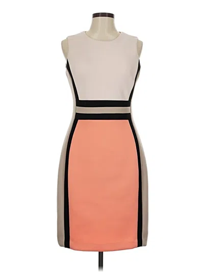 Calvin Klein Cocktail Dress, Size: Medium. Item Details: Orange, Color Block Pattern, Sheath, Boatneck, Knee Length, Sleeveless, Zippers, Women's Dresses, Polyester/Spandex