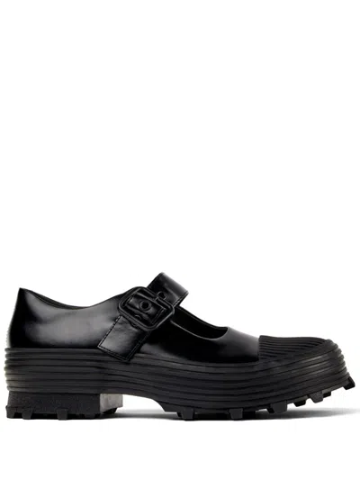 Low-top calfskin Mary Jane-style loafers. · Textured rubber cap toe · Pin-buckle strap at vamp · Padded collar · OrthoLite® Recycled™ footbed · Canvas lining · Vulcanized rubber platform midsole · Treaded rubber sole · Platform: H1.5 · Heel: H2.25 Supplier color: Black