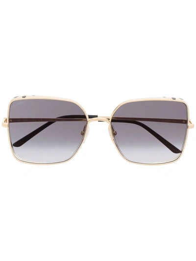 Gold-tone metal panther-pattern sunglasses from Cartier Eyewear featuring enamel detail, oversize frame, tinted lenses, straight arms and curved tips. These glasses come with a protective case..