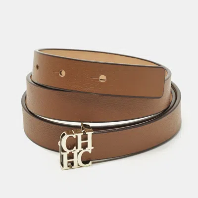 This CH Carolina Herrera slim belt is crafted from smooth brown leather for timeless versatility. Featuring a refined buckle design it complements both casual and formal ensembles. The slim profile adds subtle polish without overpowering the look. An elegant essential for everyday styling.