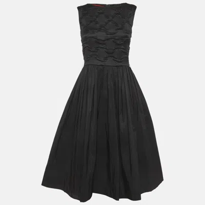 Pre-owned Black Textured Cotton And Crepe Midi Dress S