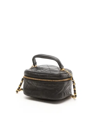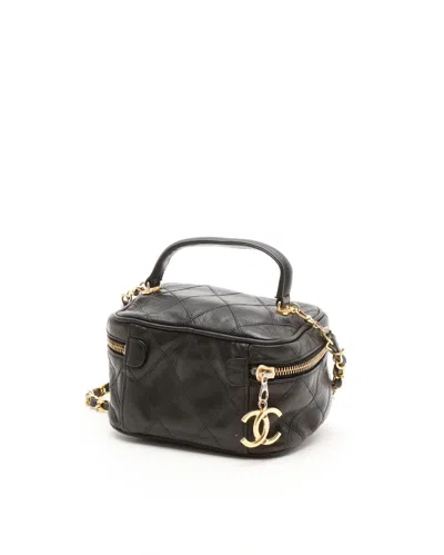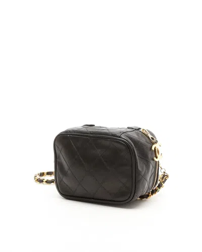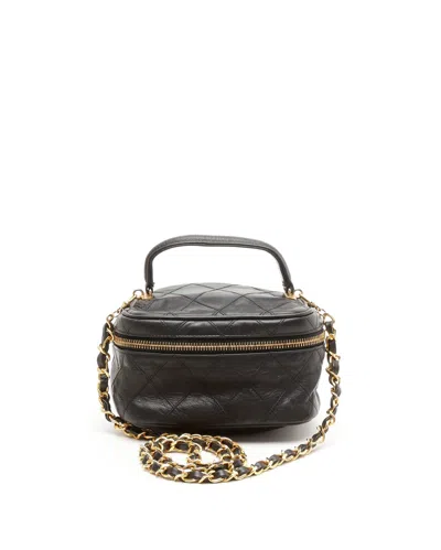 CHANEL CC Mini Vanity Bag• Black quilted leather• Gold-tone hardware• Single top handle• Woven chain and leather strap• Black leather lining• Zip-around closure• VintageOverall Preloved Condition: Good Condition.Exterior Condition: Good. Light trace of use.Interior Condition: Good. Light trace of use.Hardware: Shiny with light scratches.Delivered with authenticity card, serial number tagMade in ItalyDimensions:Height 9 cmWidth 15 cmDepth 10 cmHandle drop 4 cmStrap drop 60 cmPlease note that the majority of our items are vintage and therefore have tales to tell unless stated otherwise. Therefore, please look at pictures, descriptions and measurements provided as they give you the best idea of the story this item has to tell.