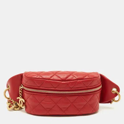 Hands free and close to the body this Chanel CC waist bag is designed for days on the move. Crafted in red quilted leather it features a zip around compartment and gold tone hardware finished with the iconic CC detail. Compact yet practical it works well for travel events or casual outings where ease and style go together.
