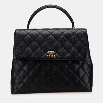 This Chanel handbag is crafted from black caviar leather with matelassé quilting and a Coco Mark logo. The textured leather offers durability while the chain strap allows shoulder carry. The interior provides practical space for daily essentials.