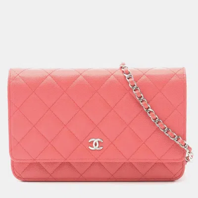 This Chanel matelassé shoulder bag is crafted from pink calfskin leather and features quilted detailing with a chain shoulder strap. The flap closure opens to a compact interior suitable for essentials. A smaller format Chanel bag that works well for everyday use.