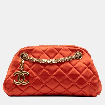 A striking expression of Chanel's playful elegance the Just Mademoiselle Bowling Bag brings a fresh contemporary attitude to a classic silhouette. Crafted in vibrant red satin it offers a bold contrast between soft texture and confident color instantly elevating any ensemble.
