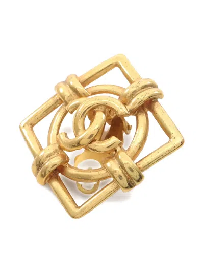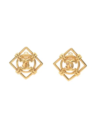 金色 方形镜框 交扣 coco mark 夹扣 装饰细节 这款商品为双只耳环
