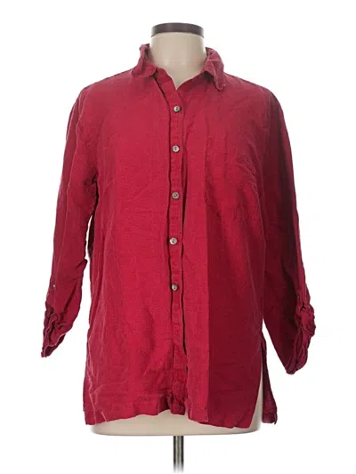 Chico's Design 3/4 Sleeve Silk Top, Size: Large. Item Details: Burgundy, Solid Pattern, Collared Neckline, Frayed Edges, Women's Tops, Silk/Linen