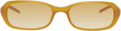 Handcrafted rectangular transparent Acetate Renew™-frame sunglasses in orange. · Anti-scratch, anti-shatter, and distortion-free · Gradient brown lenses · 100% UVA/UVB protection, category 1 · Integrated nose pads · Exposed core wires · Silver-tone hardware · Includes case · Size: 54.18 Supplier color: Honey