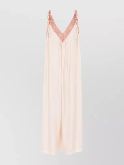 CHLOÉ Silk Lace Floor-length Sleeveless Dress In Pink