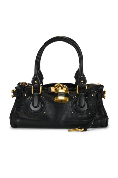 CHLOÉ Paddington Black Shoulder Bag With Oversized Padlock And C-shaped Buckles In Grainy Leather Woman
