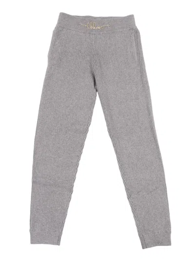 Knitted pants in 80% cotton from organic farming 20% wool yarn, elasticated waistband embellished with gold metal chain with Chlo logo in handwritten font. Inspired from Womenswear. Composition: 80% COTTON 20% WOOL