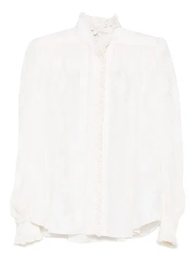 白色 真丝 提花图案 荷叶边领 弹性松紧边 弧形边