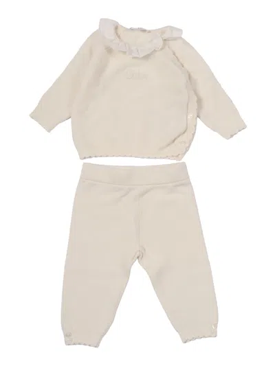 Set of knitted cardigan and pants in 95% cotton from organic farming 5% cashmere yarn, rib with scallops edge, cardigan with cotton percale collar, buttons fastening on front and Chlo logo embroidery in handwritten font. Sold in a branded gift box. Composition: 100% COTTON FABRIC 2 95% COTTON 5% CASHMERE
