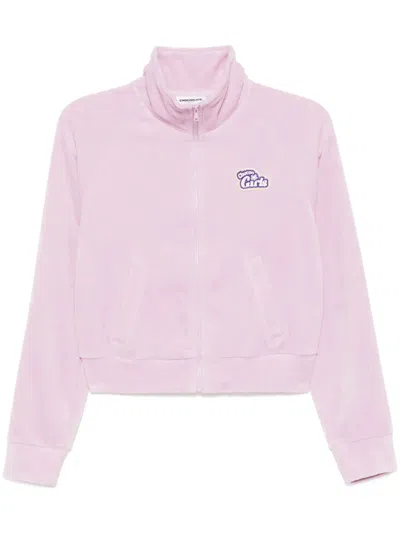 浅粉色 正面饰有拉链开合 天鹅绒 两个侧置平袋 短款