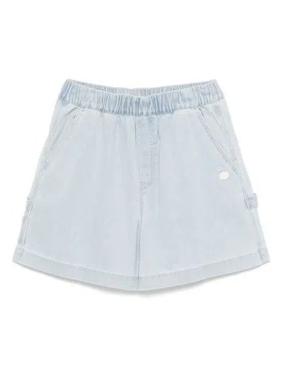浅蓝色 弹性松紧腰边 两侧饰有挖袋 背面两个贴袋