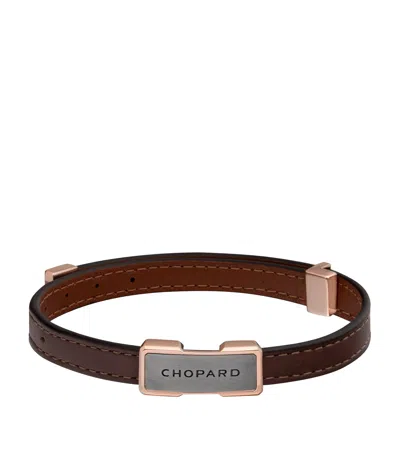 Decades of polish and commitment to exemplary craftsmanship manifest in Chopard's selection of accessories as seen in the Heritage bracelet. Italian-made from leather, it's accented with metallic hardware and an engraved logo on the plaque, pledging your brand allegiance to the revered Swiss Maison.